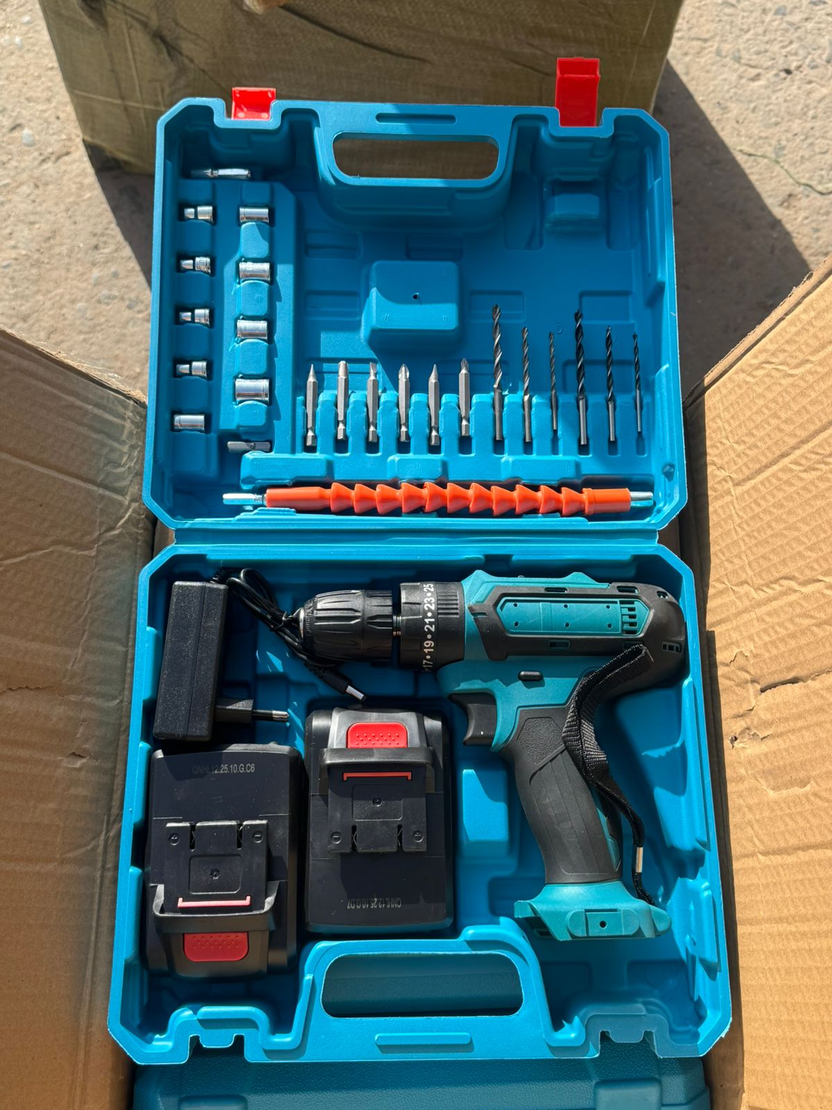 The 26V Cordless Drill delivers powerful performance with high torque and a long-lasting rechargeable battery. Designed for both home DIY projects and professional tasks, it features a lightweight, ergonomic design for comfortable handling and precise control. Perfect for drilling, screwdriving, and everyday repair jobs.