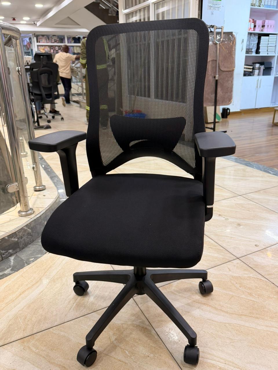 Built with integrated lumbar support, this chair helps maintain proper posture and reduce strain during long hours of sitting. The cushioned seat offers balanced comfort, making it ideal for home offices, corporate workspaces, study areas, and computer desks. Its sleek black finish complements modern décor, while the sturdy base and smooth-rolling casters ensure stability and easy mobility.