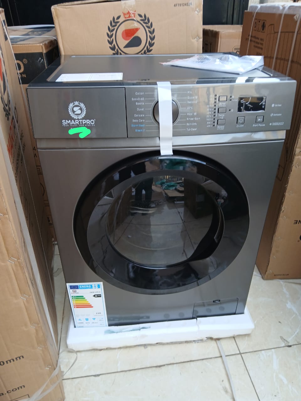 Wash and spin clothes quickly with the Smartpro 8kg Front Load Washing Machine. Efficient, durable, and perfect for home laundry.